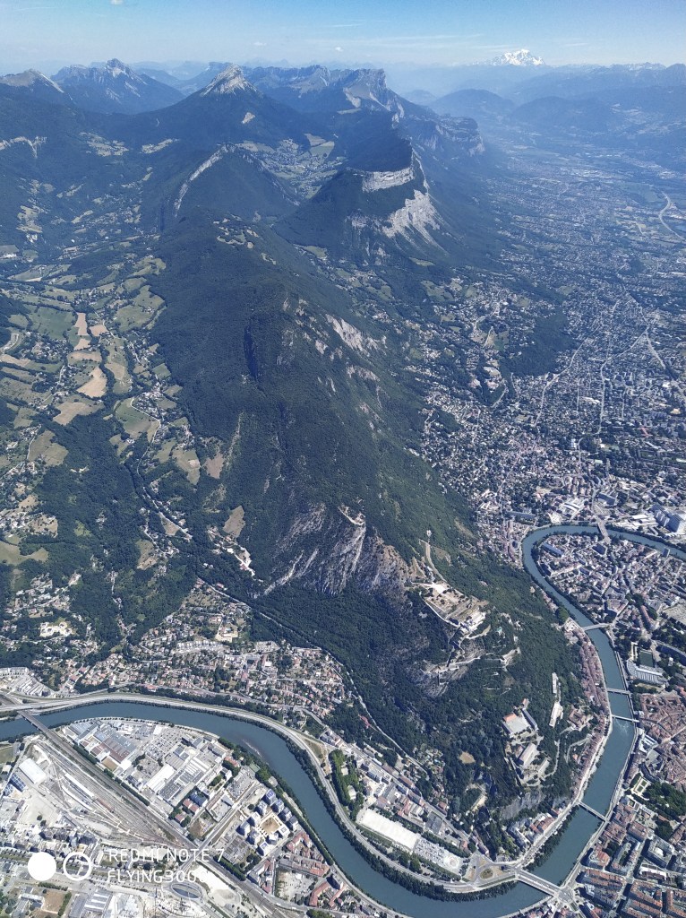 Profitant de ce début de retour, une micro-sieste au-dessus du lac s’impose avant de raccrocher au Nord des grilles-pains. Un hélicoptère, que je n’ai pas vu d’au milieu du lac, est là en train de secourir quelqu’un, je m’écarte bien et bypass les premiers thermiques par sécurité et remonte aisément à 2500m, une fois loin de la zone, après le point bas du vol à 950m. La transition pour le Mont Outhéran est particulière : je suis bien contré par le S/SO mais ça porte, donc je continue et récupère un peu de gaz en arrivant au niveau de la crête. A cet instant, je me concentre un maximum pour ne pas partir trop bas et louper la dernière transition avant de basculer dans le Grésivaudan. Rejoint par un planeur, le thermique au-dessus des crêtes de St Pierre d’Entremont donne très bien, ce qui me permet de basculer en direct sur le St Genis. Il est 16h45 lorsque je quitte à 2100 la Chartreuse, croyant que le plus dur était fait.