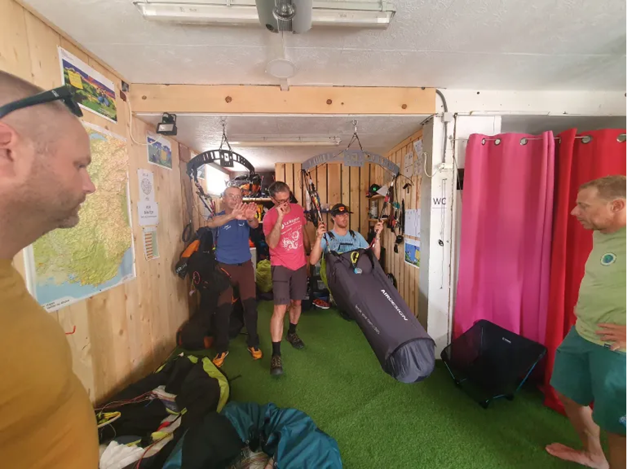 Nous voici, 8 pilotes de parapente du CSH réunis autour de Nicolas & Pierrot pour 3 jours de “SIV”. Nos profils pour ce stage sont très variés, allant des “crosseux” expérimentés à de tous jeunes “aiglons” découvrant leur premier SIV, en passant par des pilotes déjà initiés, voire quelques voltigeurs en herbe. Bref un panel très diversifié.